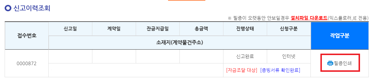 신고필증이 나오면 부동산 통해서 받을 수 있어요