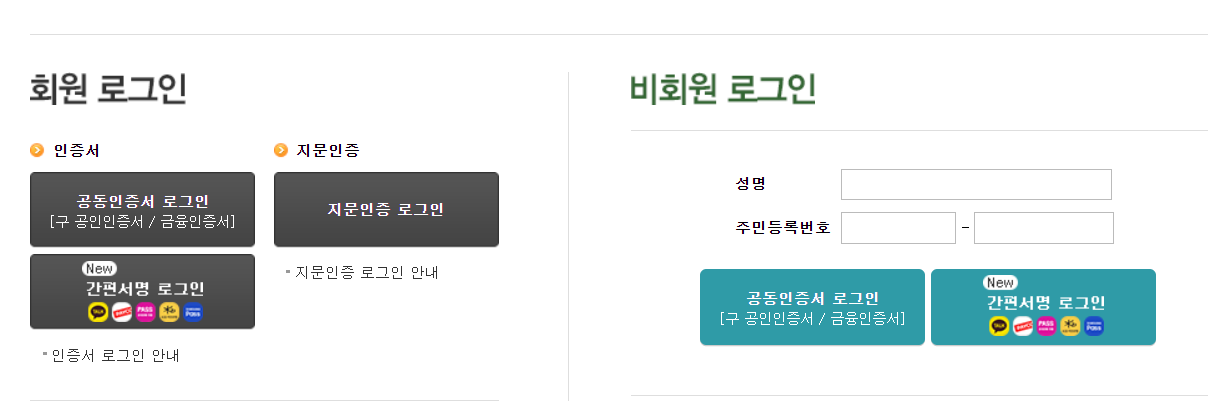 1. 공동인증서(구 공인인증서)나 간편서명 로그인으로 로그인